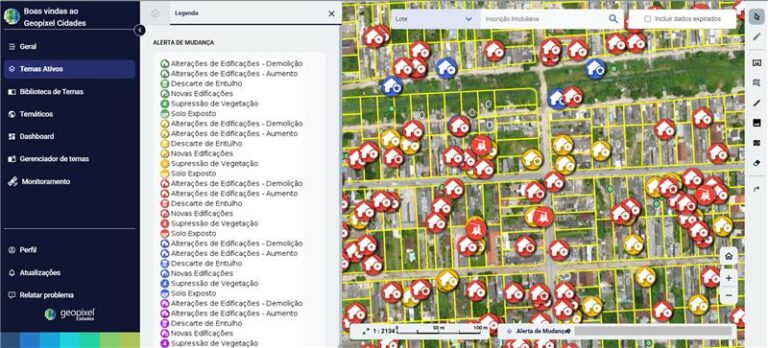 Por meio de imagens orbitais ou aéreas frequentes, com capacidade de coleta diária, alertas são criados e enviados para as equipes de fiscalização, tudo integrado na Plataforma Geopixel Cidades.